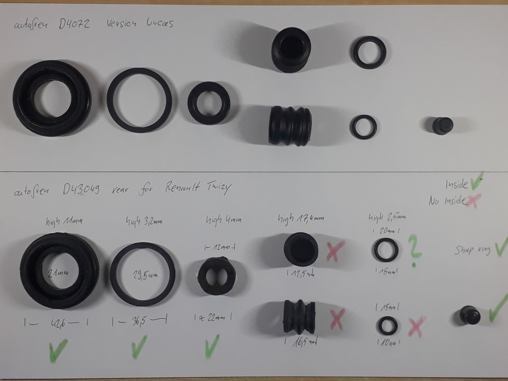 Und das führt nicht dazu, dass der Sattel einseitig in Richtung Bremsscheibe gedrückt wird und somit die Bremse schleift?Goldbacher schrieb: Die Faltenbälge vom Reparatursatz TRW ST1148 (1,55 €) haben an beiden Seiten die richtigen Durchmesser, sind aber etwas länger. Weil sie sich weit genug zusammendrücken lassen, ist damit das Problem damit für mich erstmal erledigt.