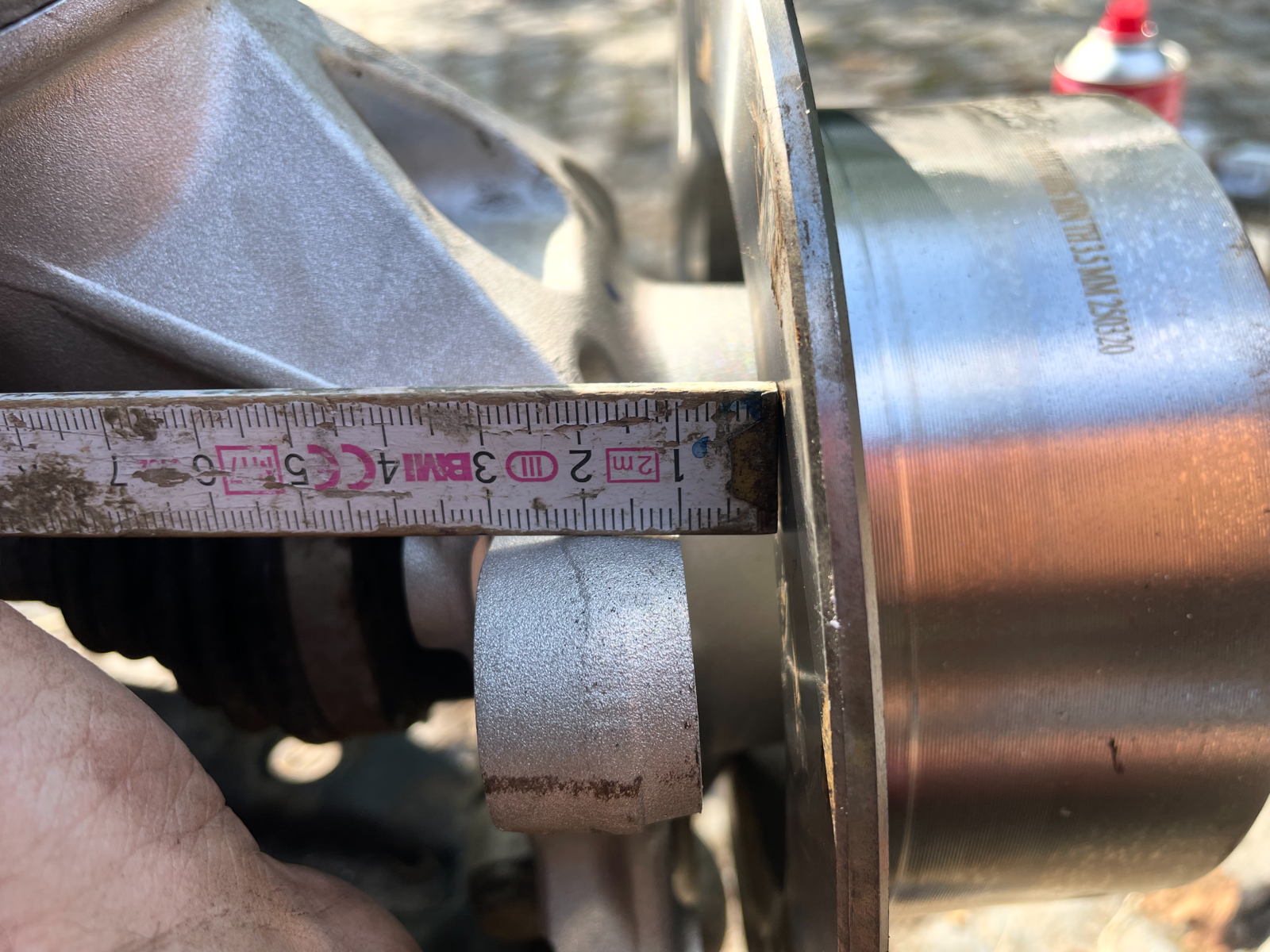 hab den achsschenkel (von atp) grade drauf, will die bremse montieren - fehlen mir 2 mm zwischen Scheibe und Aluguss