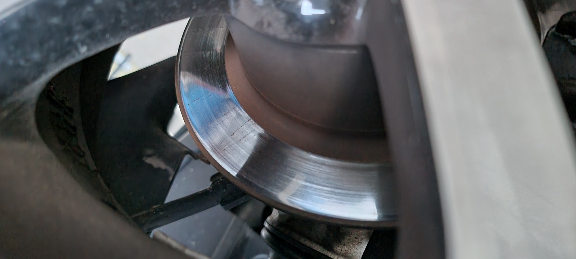 Ich habe mal Bilder davon gemacht. Die Scheiben sind zwar noch von den alten Belägen etwas wellig aber ich hoffe, man kann trotzdem gut erkennen, wie sie spiegeln.