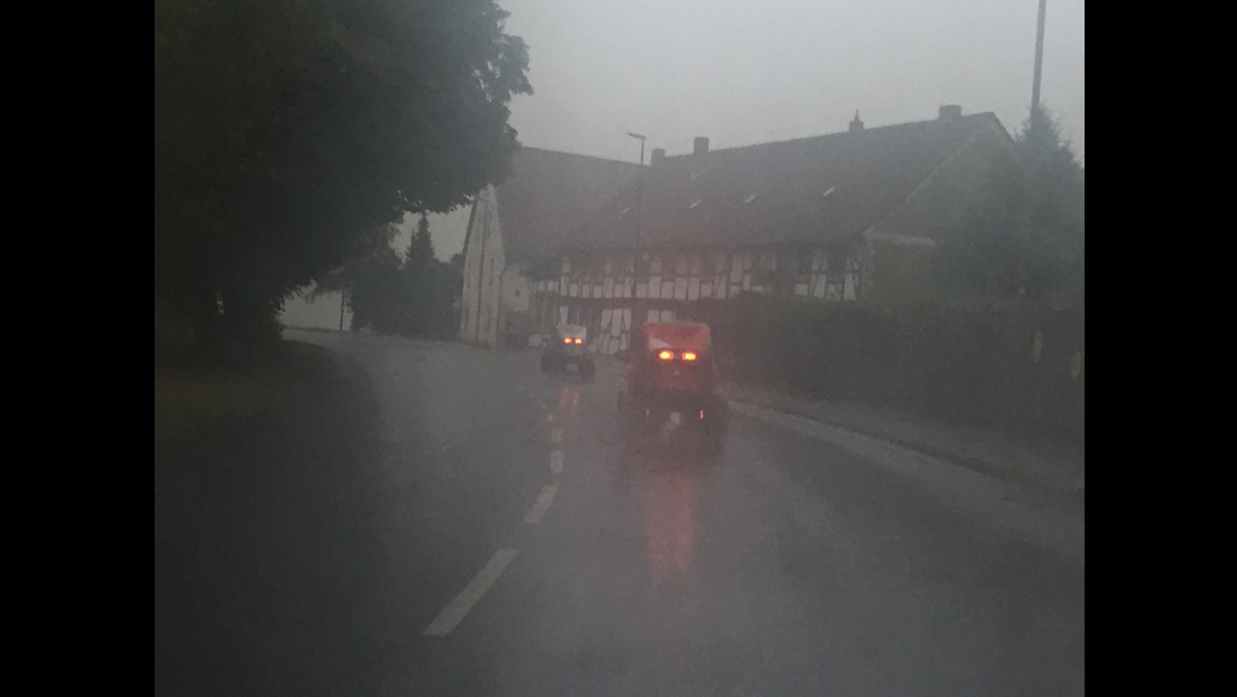 Auf einmal wir es zappenduster. Plötzlicher Platzregen. Selbst Scheibenwischer Stufe 2 hat nicht wirklich geholfen.