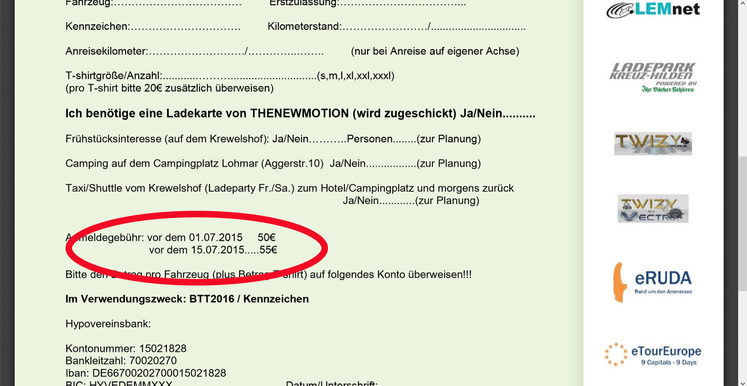 | 13 | Floschi | Leverkusen | + Freundin / 3x230V Lademöglichkeit bei der Durchreise zum BTT (bitte vorher PN) |
