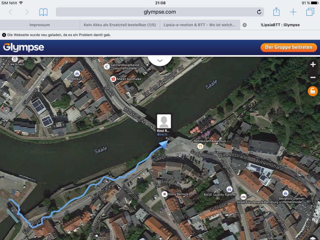 Der Knut treibt gerade mit 4km/h die Saal herunter nur das Roadmatching schnappt sich die nächste Straße.