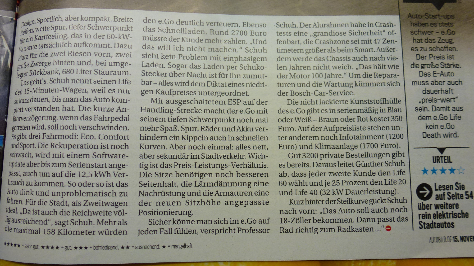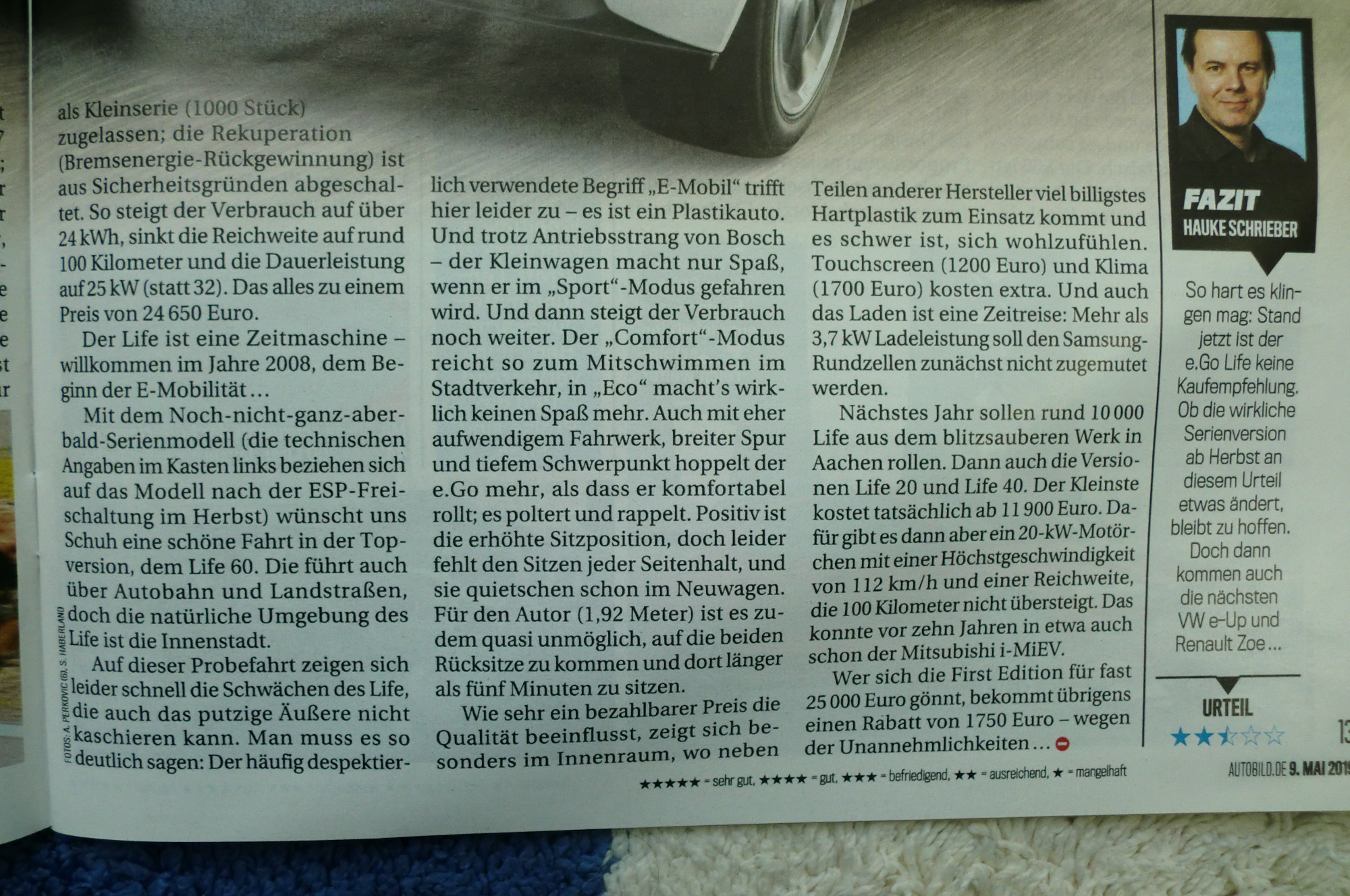 Den E-GO Life wegen dem kleinen Akku als das klimafreundlichste Auto ‚Deutschlands‘ zu bezeichnen halte ich für etwas überzogen. In der Schule (es war am TG) hatte mal ein Lehrer gefragt. ‚Was ist die perfekte Konstruktion?‘
