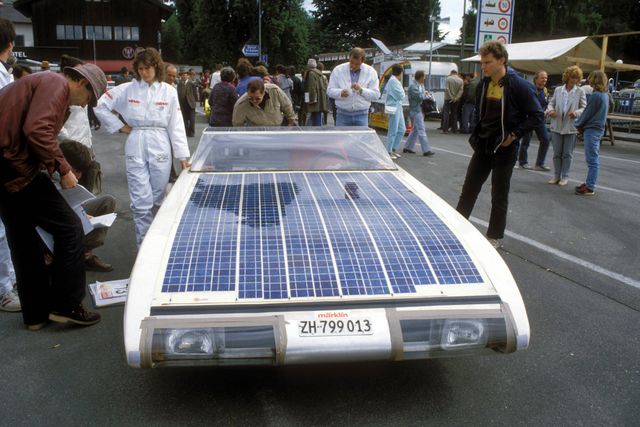 „Sonnige Zukunft: Das erste solargetriebene Automobil wurde am 31. August 1955 in Chicago vorgestellt – und war nur knapp 40 Zentimeter lang. Mit einem sonnenbetriebenen Modellauto wollte der General-Motors-Angestellte William G. Cobb veranschaulichen, dass man einen Pkw auch ohne fossile Brennstoffe in Bewegung versetzen könne. Das mit zwölf Solarzellen und einem Elektromotor versehene Mini-Gefährt war seiner Zeit allerdings wohl weit voraus, bis zur Straßenreife von Solarfahrzeugen sollte es noch viele Jahre dauern.“