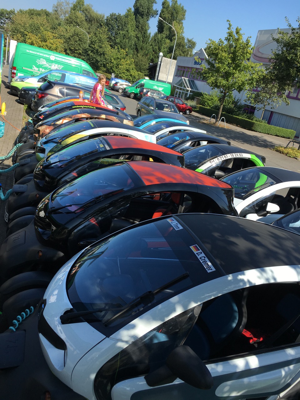 Ich bringen dann am Samstag, meine "wenn-sie-sich-nicht-kurzfristig-ganz-anders-entscheidet-wie-sonst-auch-immer" Tochter (11 J.) mit und freue mich, R2-D2 kennen zu lernen! Damit du weißt, wie es mit richtig vielen Twizys aussehen kann, hier ein Foto vom September (Sebastians Geburtstag) - bei Sonnenschein und 20 Grad waren wahrscheinlich mehr da als am nächsten Samstag kommen.