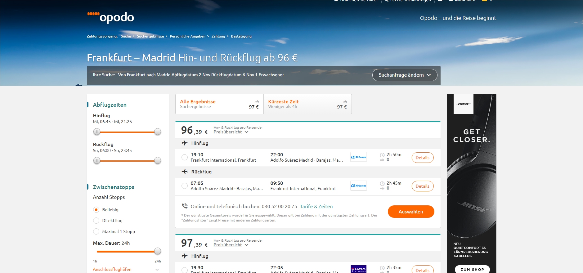 Abflug ab München bis Madrid und zurück vom Do., 3.11. mit So., 6.11.: