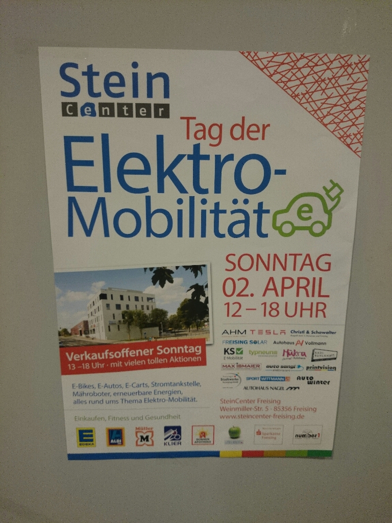 Am kommenden Sonntag den 02.04 ist in Freising wieder Dult, verkaufsoffener Sonntag und im Stein Center wieder Tag der Elektromobilität: