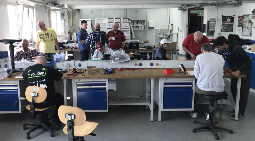 Es bedurfte einiger Monate Vorbereitung, bis das finale Design stand und letztendlich alle Teile besorgt waren. Am 23. März 2019 trafen wir uns in einem Ausbildungszentrum der Bahn im Frankfurter Gallus zum Bau der LadeLinas.