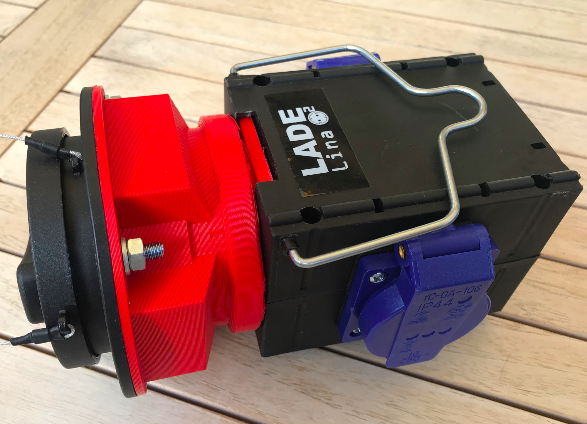 Das Design entspricht grob der LadeLuzy , wobei wir eine Steckdose der einfacheren Montage wegen einem Sicherungshalter für 2 Schmelzsicherungen geopfert haben.