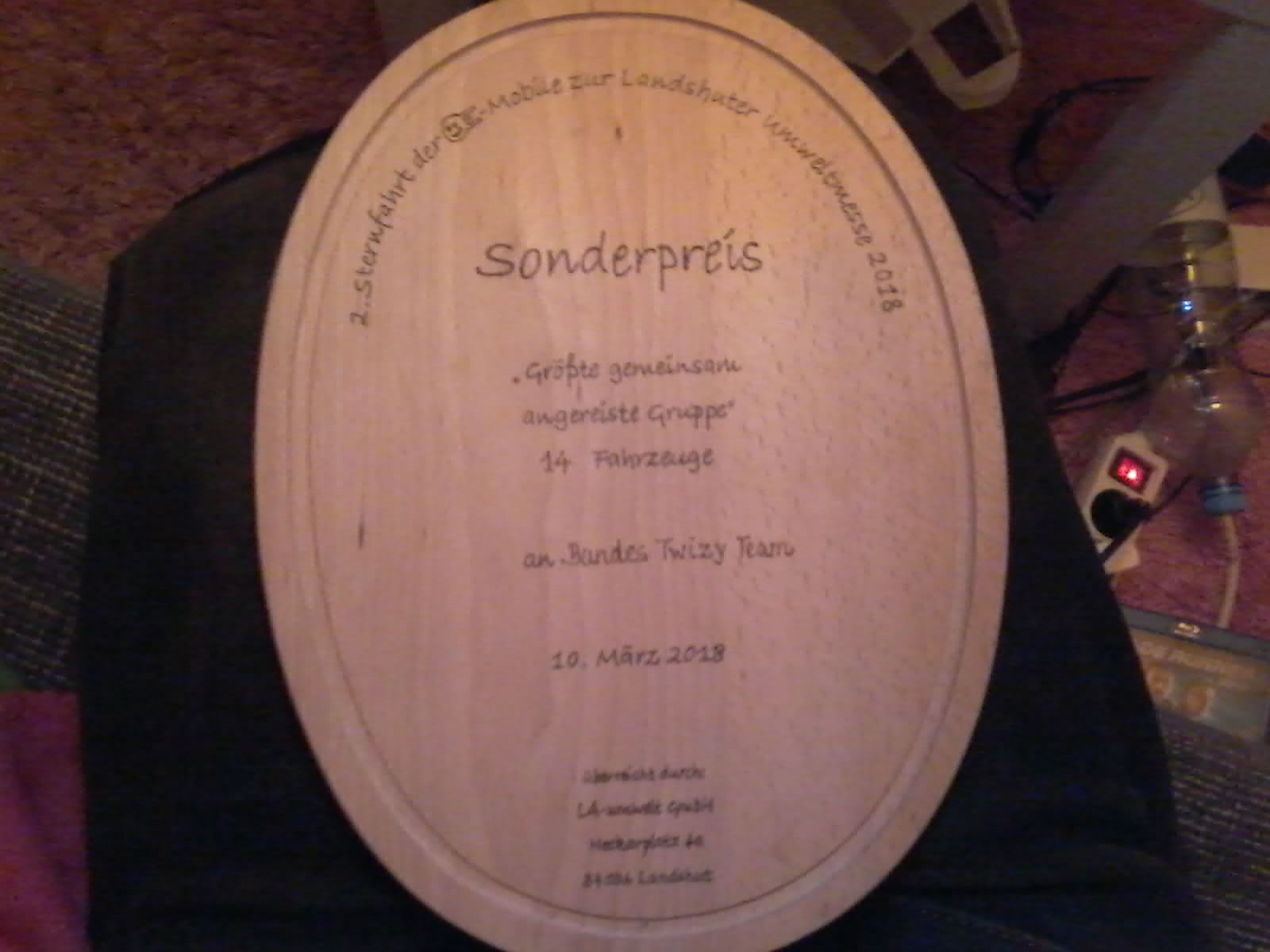 Neben einigen Vortragen (Teslaweltumrunder etc.) gabs in drei Hallen nen Haufen Stande zu besichtigen und absschließend konnten wir auch noch den Preis fűr die größte angereiste Truppe mitnehmen!!!