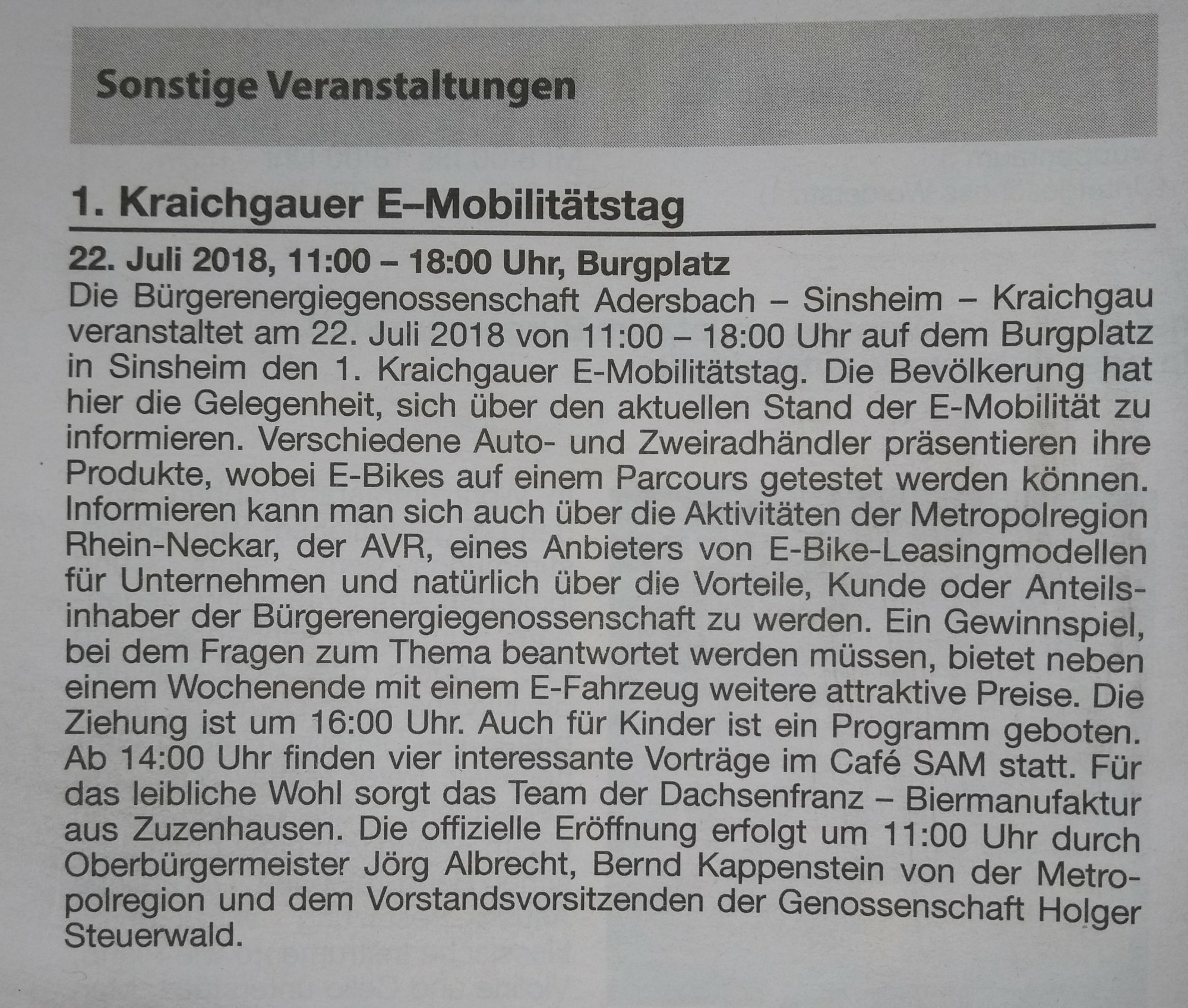1. Kraichgauer E-Mobilitätstag 22.07.2018