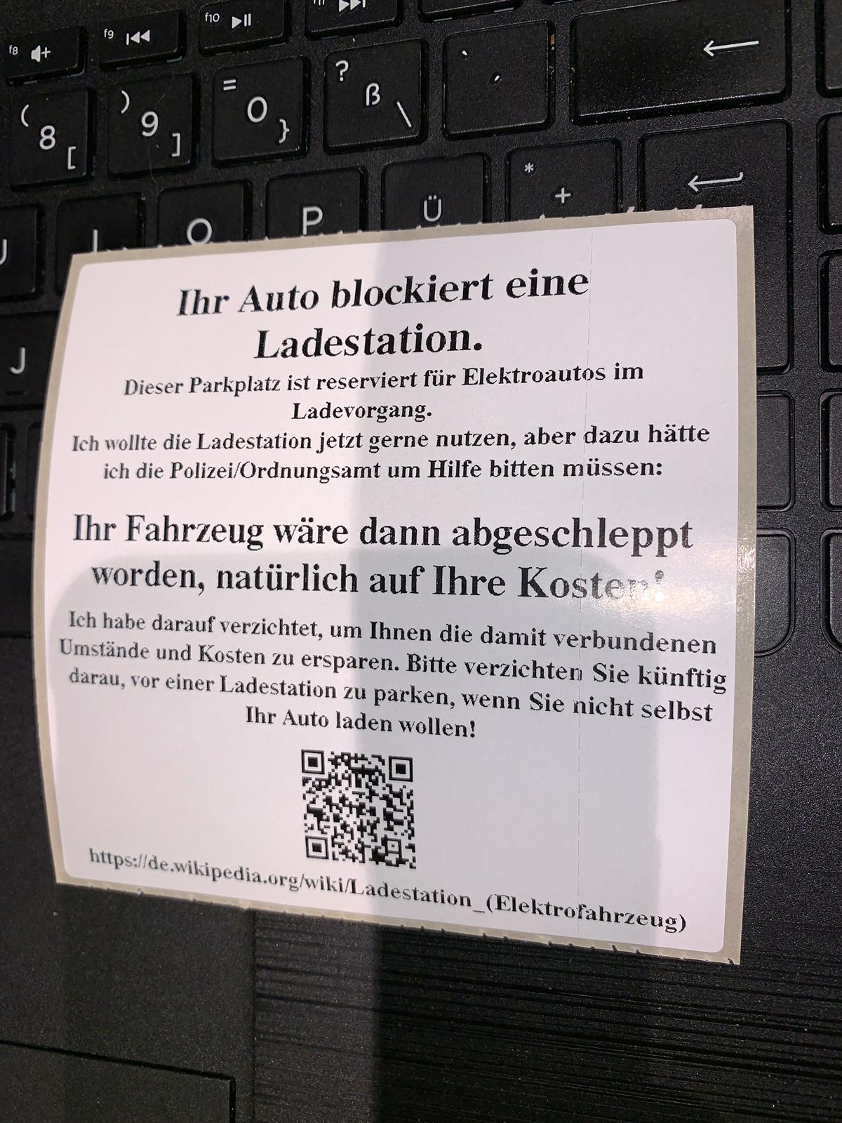 Ich bring noch die geilen Aufkleber vom Tom mit für alle ....für die Ladesäulenblockierer