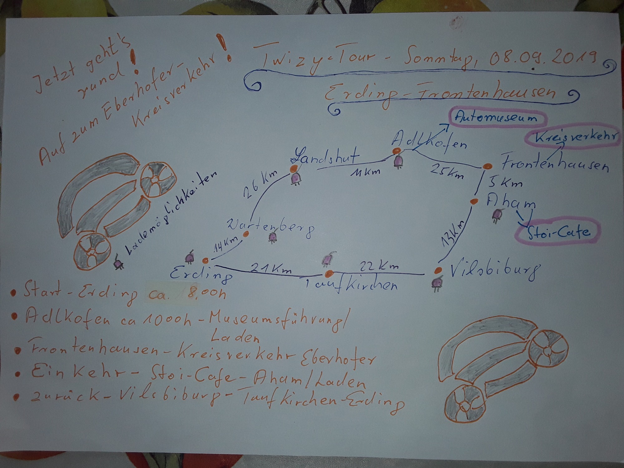 Wenn 8 Uhr in Erding Abfahrt sein soll und der Twizy einigermaßen voll sein soll müsste ich spätestens 7 Uhr, besser 6.30 Uhr dort sein und laden.