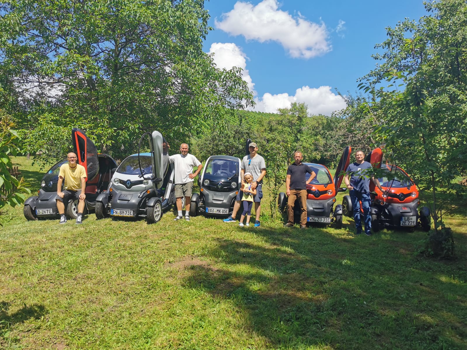 Schee wars. Sieben Twizys mit 11 Personen aus und um Stuttgart, sowie mit gut 10 Stunden Anreise aus dem Raum Friedrichshafen waren gestern am 12.07 auf einem schönen Gartengrundstück im Weinberg von Winnenden. Bei bestem Wetter, Gegrillten und kühlen Getränken und Abendlichem Lagerfeuer. Noch mal ein herzliches Dankeschön an Kalle für die Einladung auf sein Stückle !