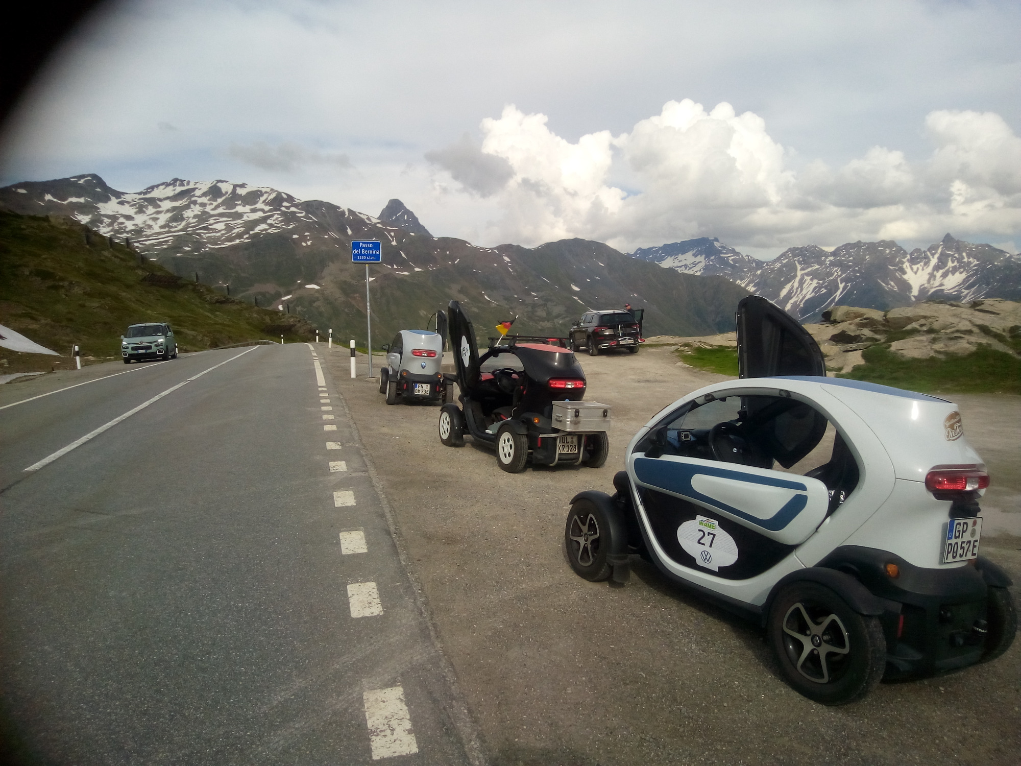 48 km bis 3. Ladestopp St. Moritz(CH) inc. 24 km über Berninapass 820 Höhenmeter, Passhöhe 2.320 m (Verbrauch 50 )