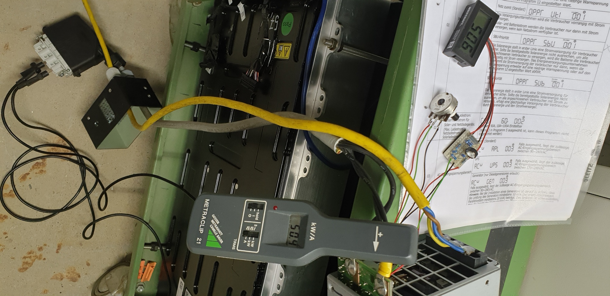 Heute, den HP Lader für den Akku Zugang vorbereitet und Probelauf / Stromanzeige mittels Stromzange "abgeglichen".
