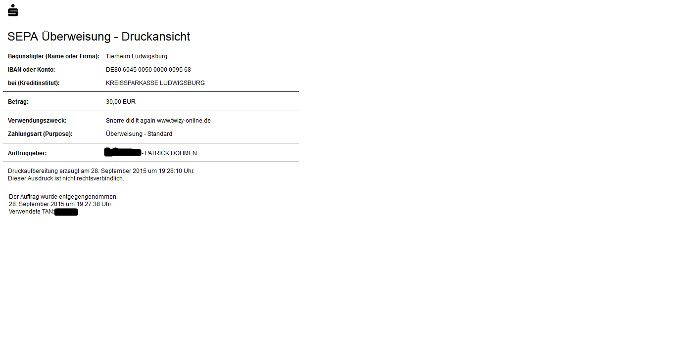 Meine zweite Spende geht wiederum zum Tierschutz Ludwigsburg. Wir schaffen das.