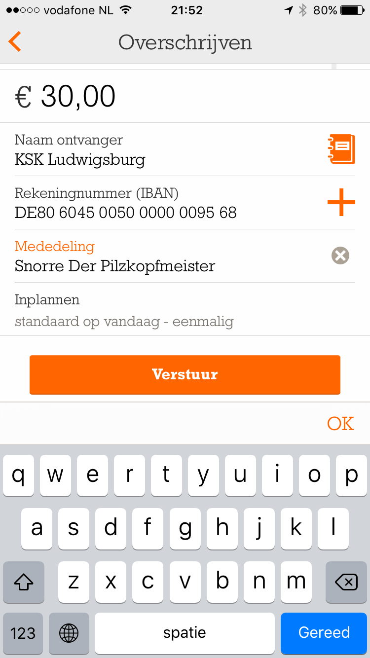 Mache die Überweisung fertig ... aber nicht an die LBer.
