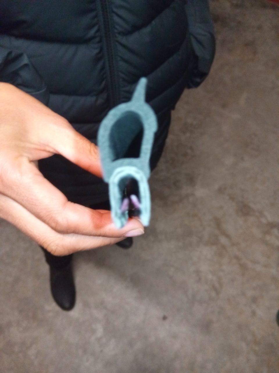 Außerdem arbeiten Sie an weiteren Abdichtungsmaßnahmen, besonders im vorderen Bereich der Türen. Dazu zeigte er uns ca 6 gummiprofile mit denen sie im Moment experimentieren. Hier ihr momentaner (unscharfer) Favorit.