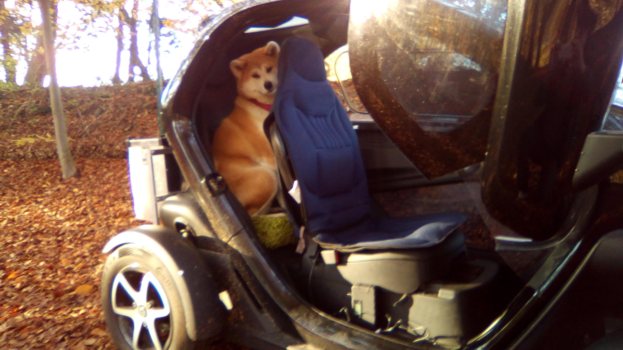 you wanted to make me some photos. Here they are (I hope so, I'm not so interested in social medias - and the camera is very poor. First picture shows a very small solution to fit the windows to the body oft the Twizy. And the last shows my dog in the Twizy. I think she is as happy as I am about the windows.