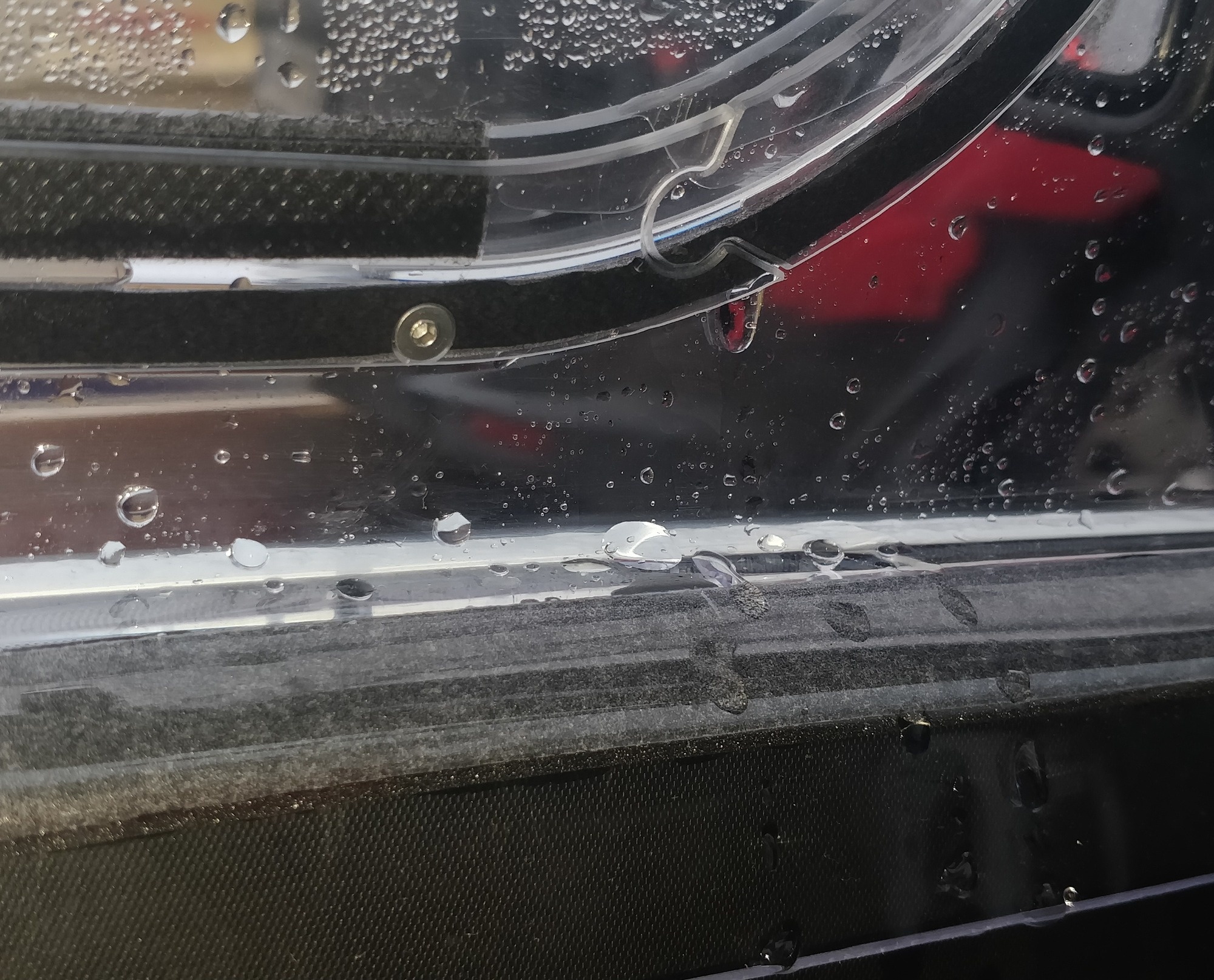 Mine also sometimes, get a little water when it rains hard. It's hard to make that waterproof since the sliding window slides on that part. But no problem.