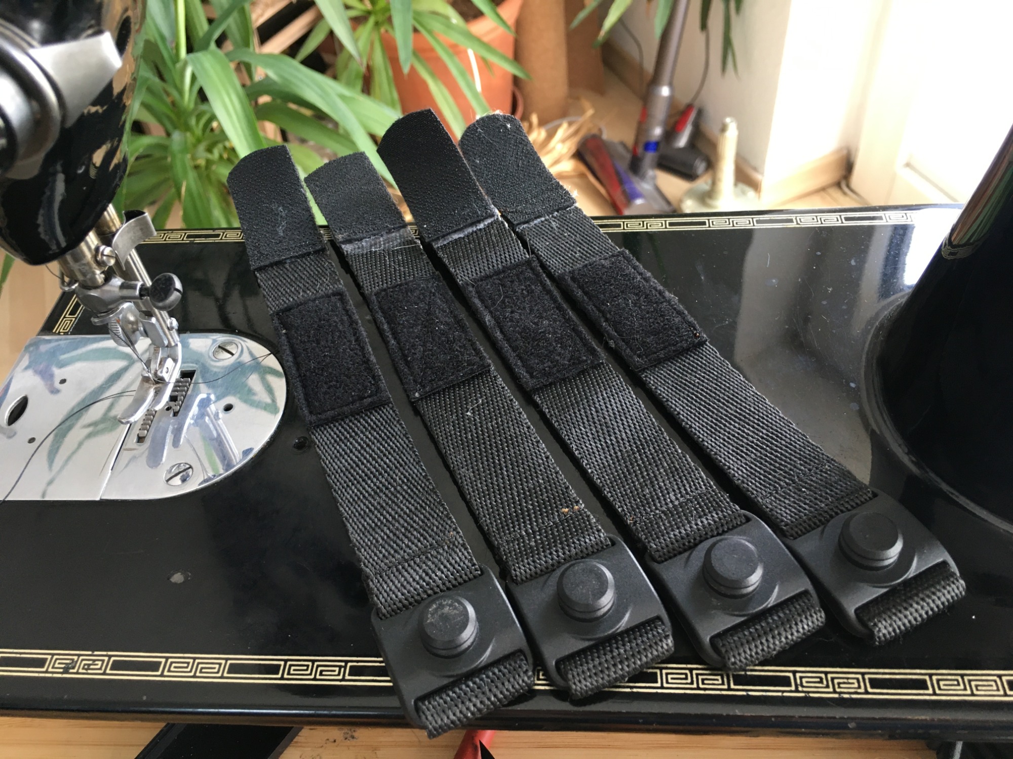 My solution? Go completely overkill with Fidlock magnetic connectors, and Dyneema webbing. I also stitched on some olive-green pull tabs that will later match well to the color theme I'm going with.