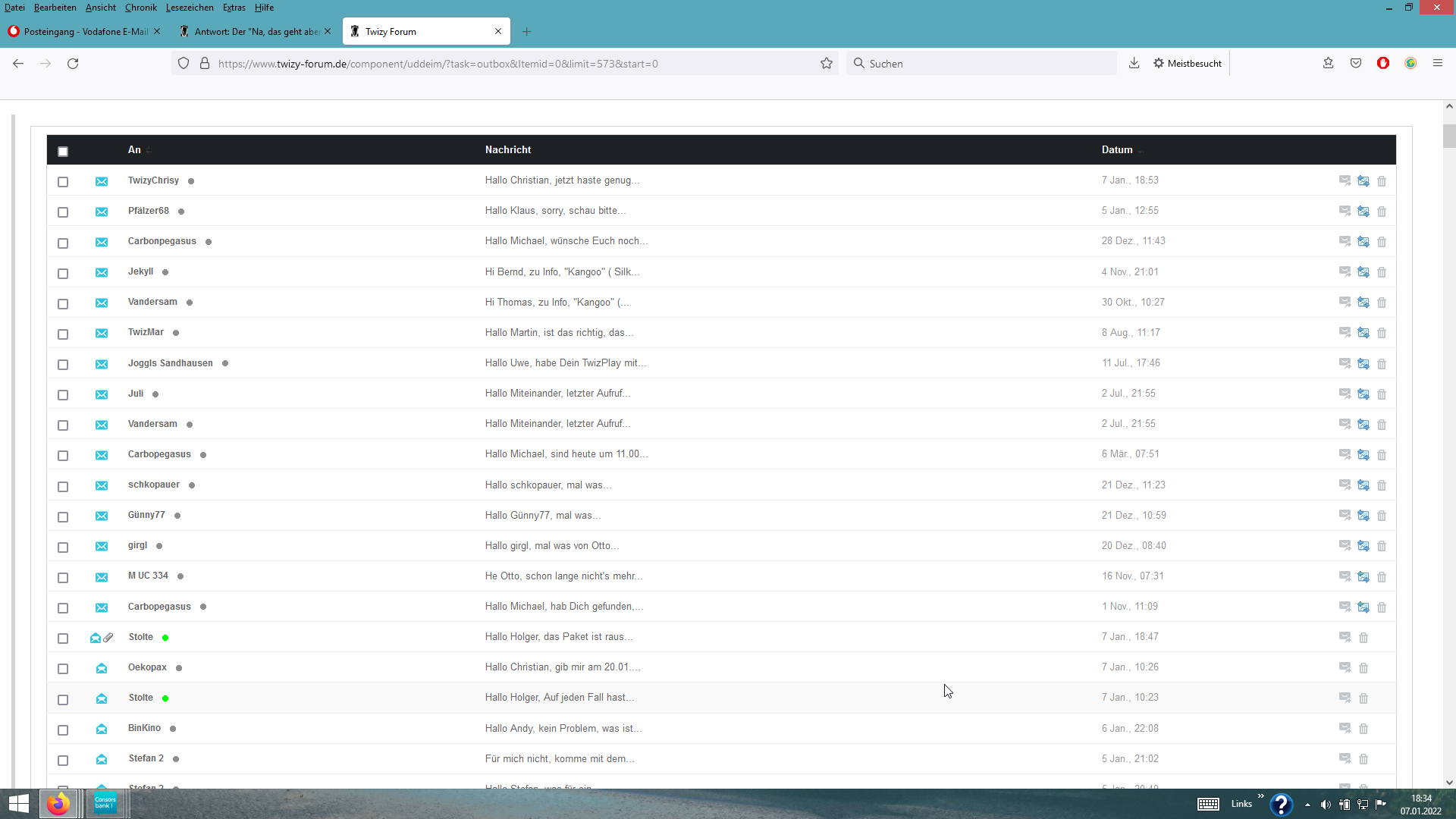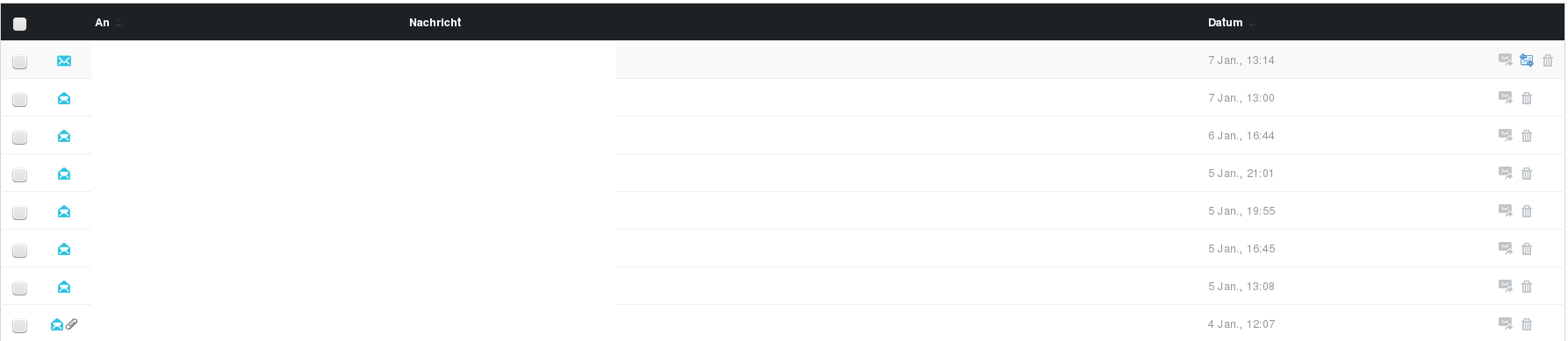 Da gibt es Posteingang, wie hier auch, Postausgang und Gesendete Nachrichten. In ersteren sind die Nachrichten, die gesendet, aber noch nicht vom Empfänger gelesen (gesehen) sind. In letzteren sind sie vom Empfänger gelesen (oder besser gesehen). Sprich, da sind gleich 2 Rubriken eingerichtet. Mit dieser Frage hier, habe ich auch hier reingeschaut. Da gibt es nur Postausgang.