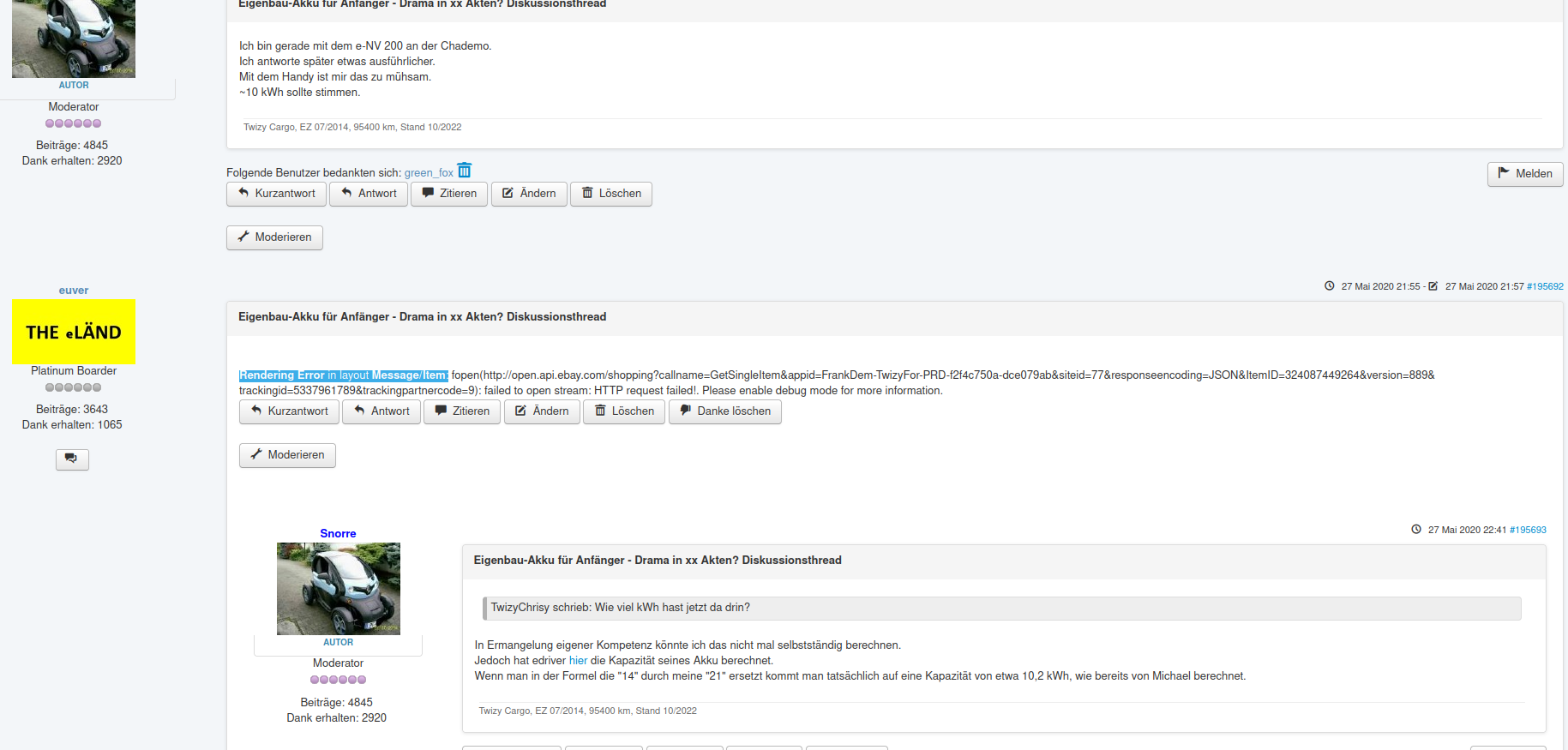 Wird alle Posts betreffen, in den Ebay-Links vorkommen. Ich denke mal, die haben das API geändert und dadurch kommt hier der Interpreter von Kunena durcheinander.
