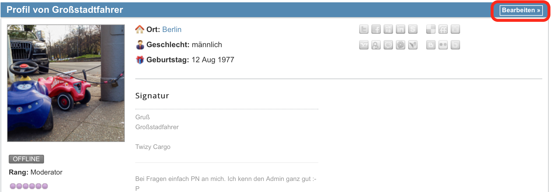 In deinen Profileinstellungen -> Auf "Bearbeiten" klicken.