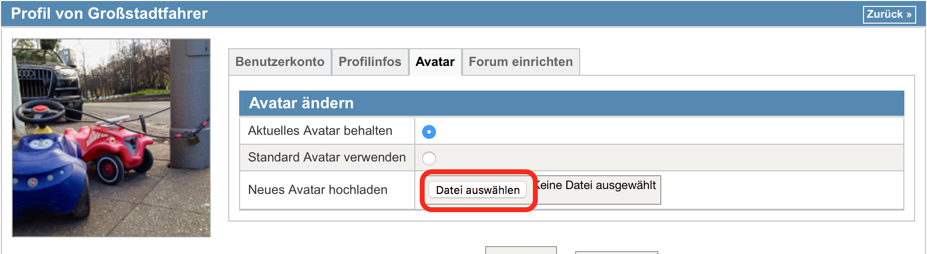 Danach im Avatar-Reiter die "Datei auswählen". Gespeichert wird automatisch. (Eventuell Seite neu laden)