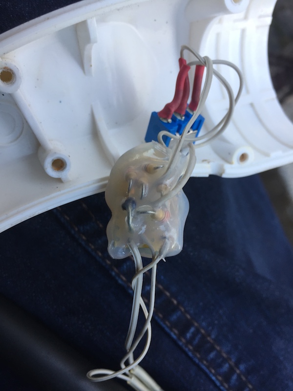 Nach dem Öffnen hat mich erstmal ein Blob Heißkleber mit einer auffällig hohen Zahl diskreter Bauteile begrüßt.