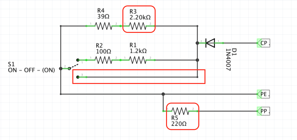 In der OFF-Position lagen am CP dann 2740Ohm (Vehicle Detect) an die nicht geschaltet wurden.
