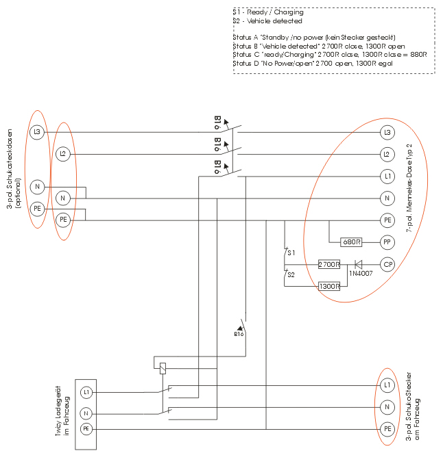 Könnte mir vorstellen, dass man eine fast identischen Beschaltung wie die üblichen Adapter für "Vehicle detected" und "charge ready" nehmen könnte. Ich würde dann allerdings die Reedkontakte durch Schalter ersetzen und nach drinnen verlegen.