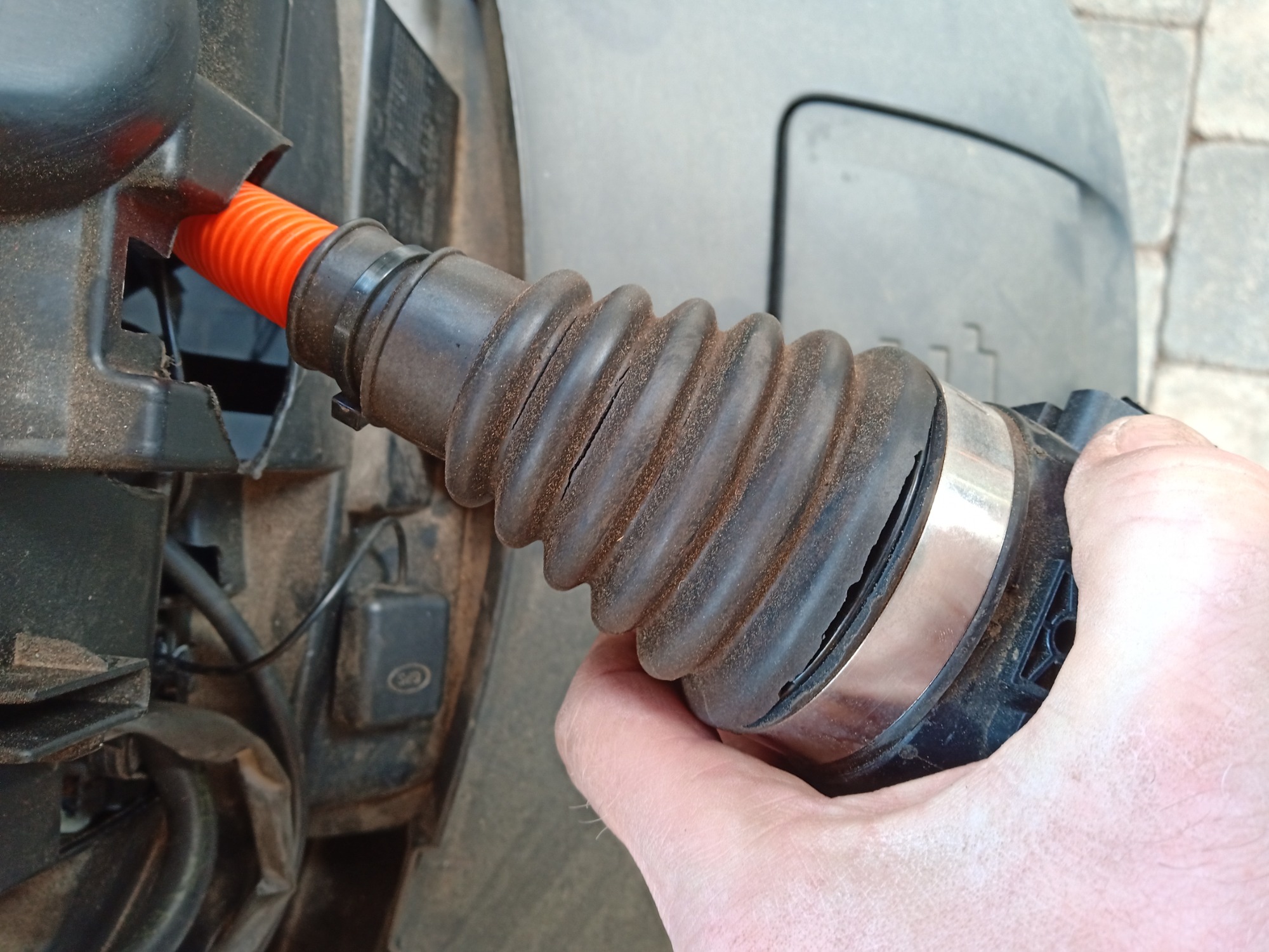 Um das 1. Gehäuse mit dem Schütz stabil in den Fußboden"Keller" einzubauen und die originale Lade-Spiralleitung 2x nebst der Zuleitung vom Verteiler ( 5x2,5² ) Wasserdicht zu klemmen musste das Aufbewahrungsrohr "etwas" schmaler werden und die Blechhalterung des extra CP-Steckers ab. Die Spiralleitung ist ein Drecksding, die Krümmung geht fast nicht raus... aber jetzt passt es und auch die Zugentlastung nebst der Ausziehstopp"schnur" sind wieder fix dran.