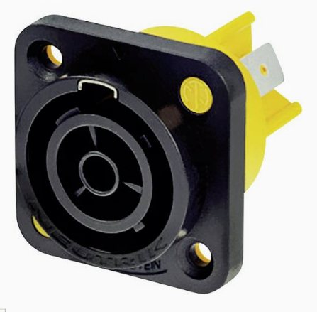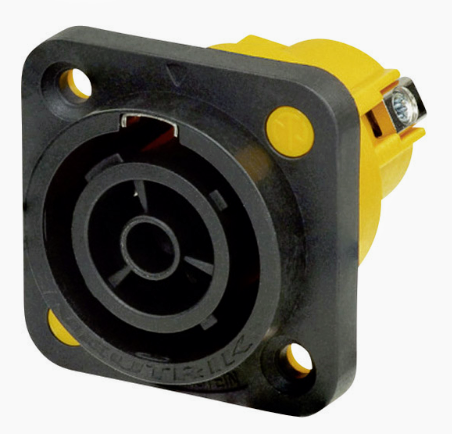 Das Powercon True 1 System ist bei 16A 230V Steckbar IP65 und verriegelt mechanisch.