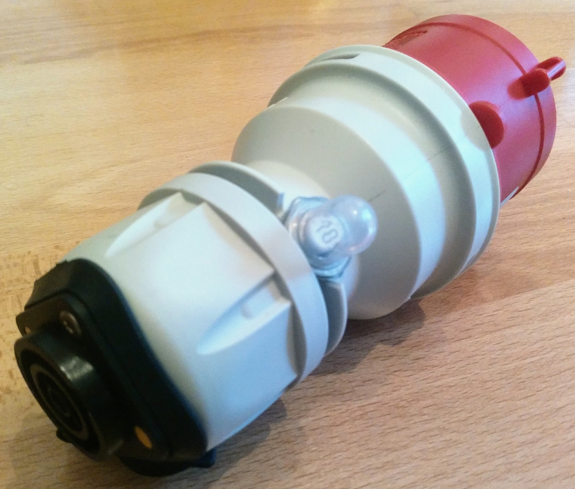 Aus dem Drehstrom Stecker kommen dann 2 oder 3 Kabel mit Kupplung, anstelle der eingebauten Buchse und fertig