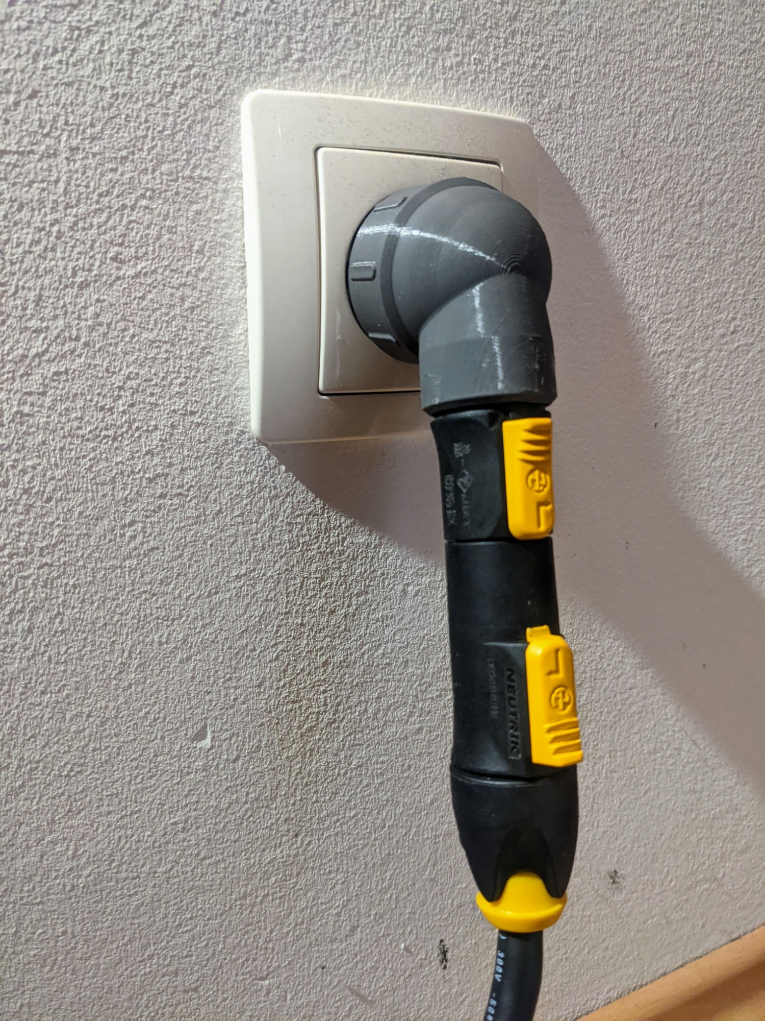 Und damit die Kontaktstifte des Schuko Steckers nicht rösten fummelt man jetzt diese Konstruktion irgendwo im schwarz-gelben Bereich auseinander anstelle den Schuko aus der Dose zu ziehen....