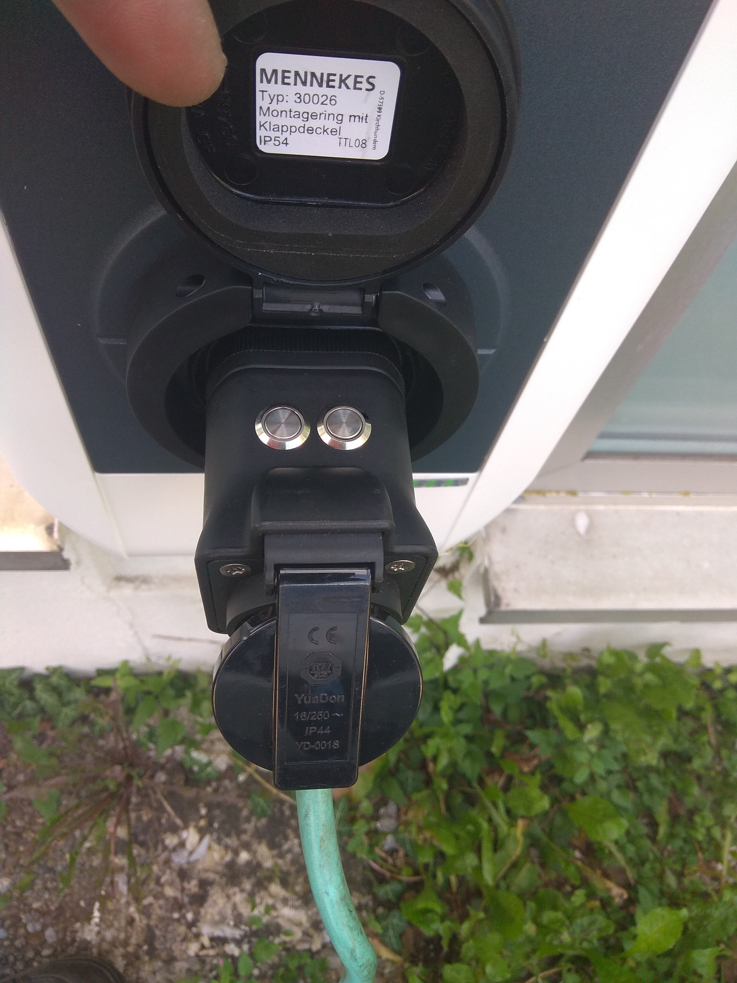 Typ 2 auf Schuko Adapter von Ali für €20,- + Verlängerungsring