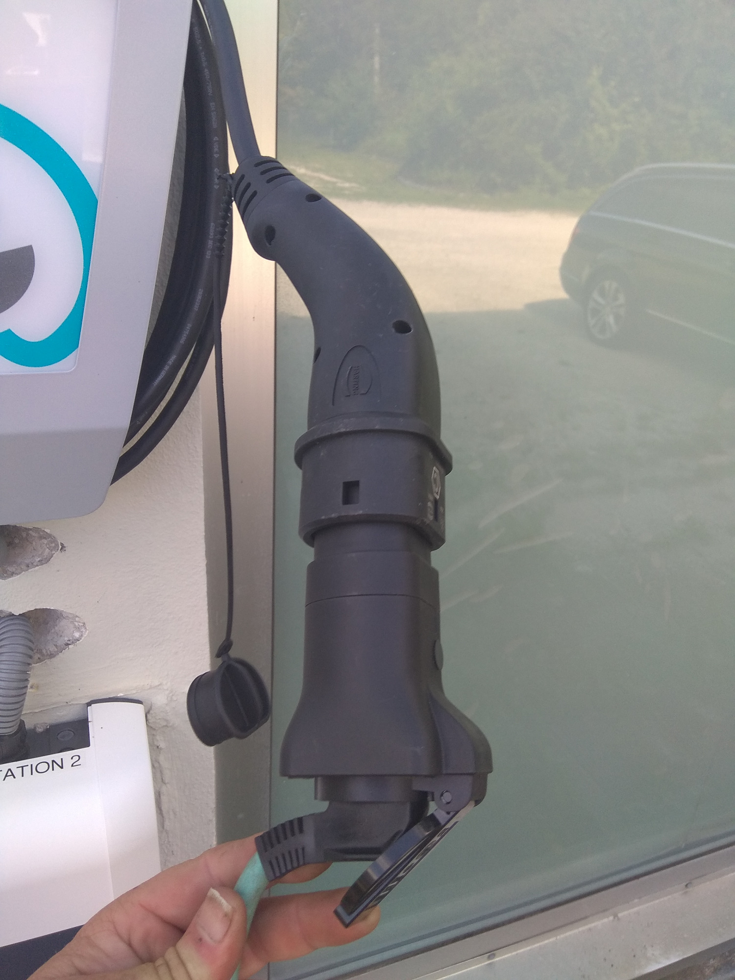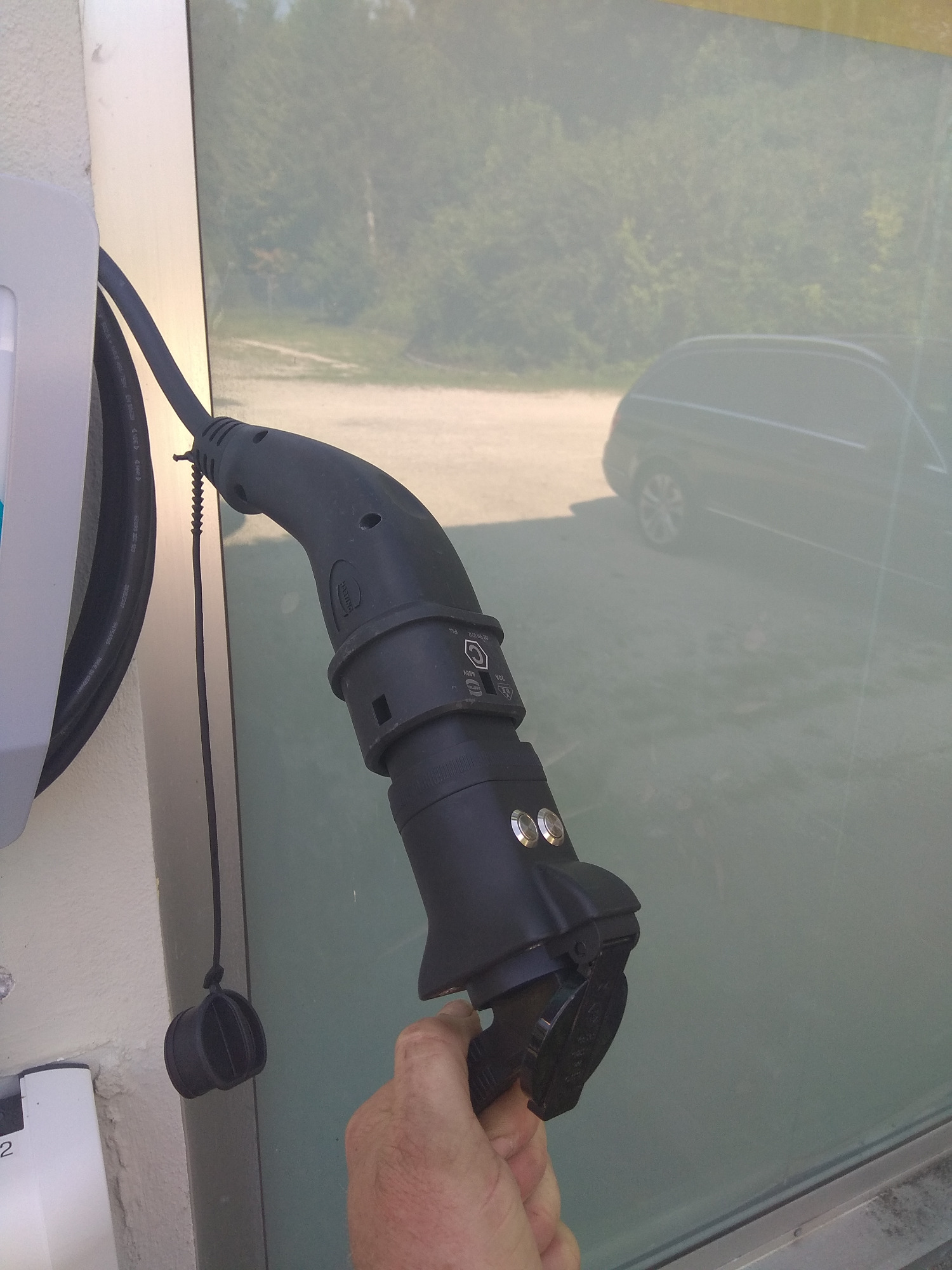 Laden funktioniert, ein Schalter verriegelt das Kabel und der zweite startet die Ladung bei eingedrückter Stellung.