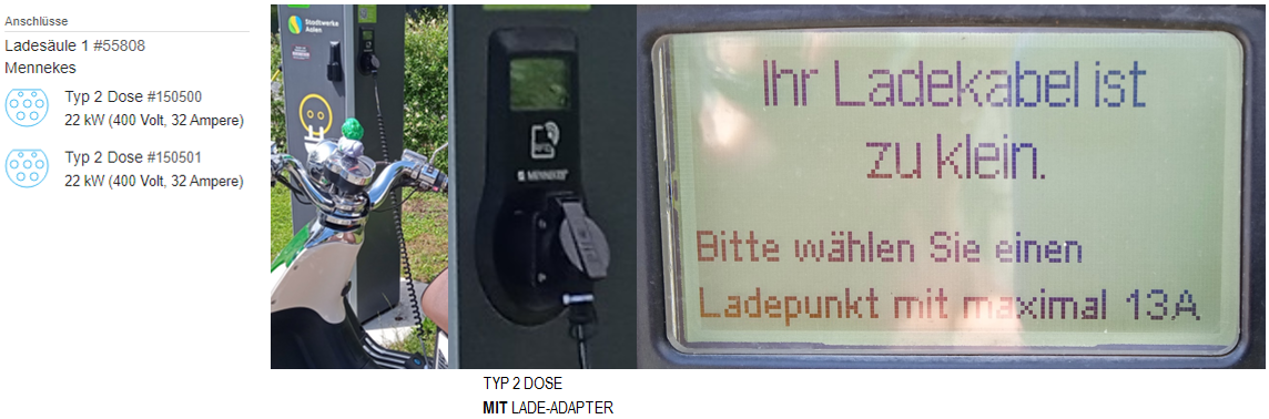 Erster Ladeversuch an Ladesäule mit nur Typ2-Dose: