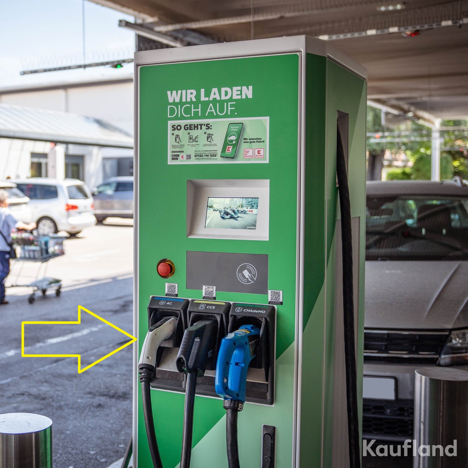 Im Foto wird der aber auch direkt in die Ladestation gesteckt. dann wäre er doch auch zu lang für die Pistolenbuchse von der Kaufland-Ladestation ?