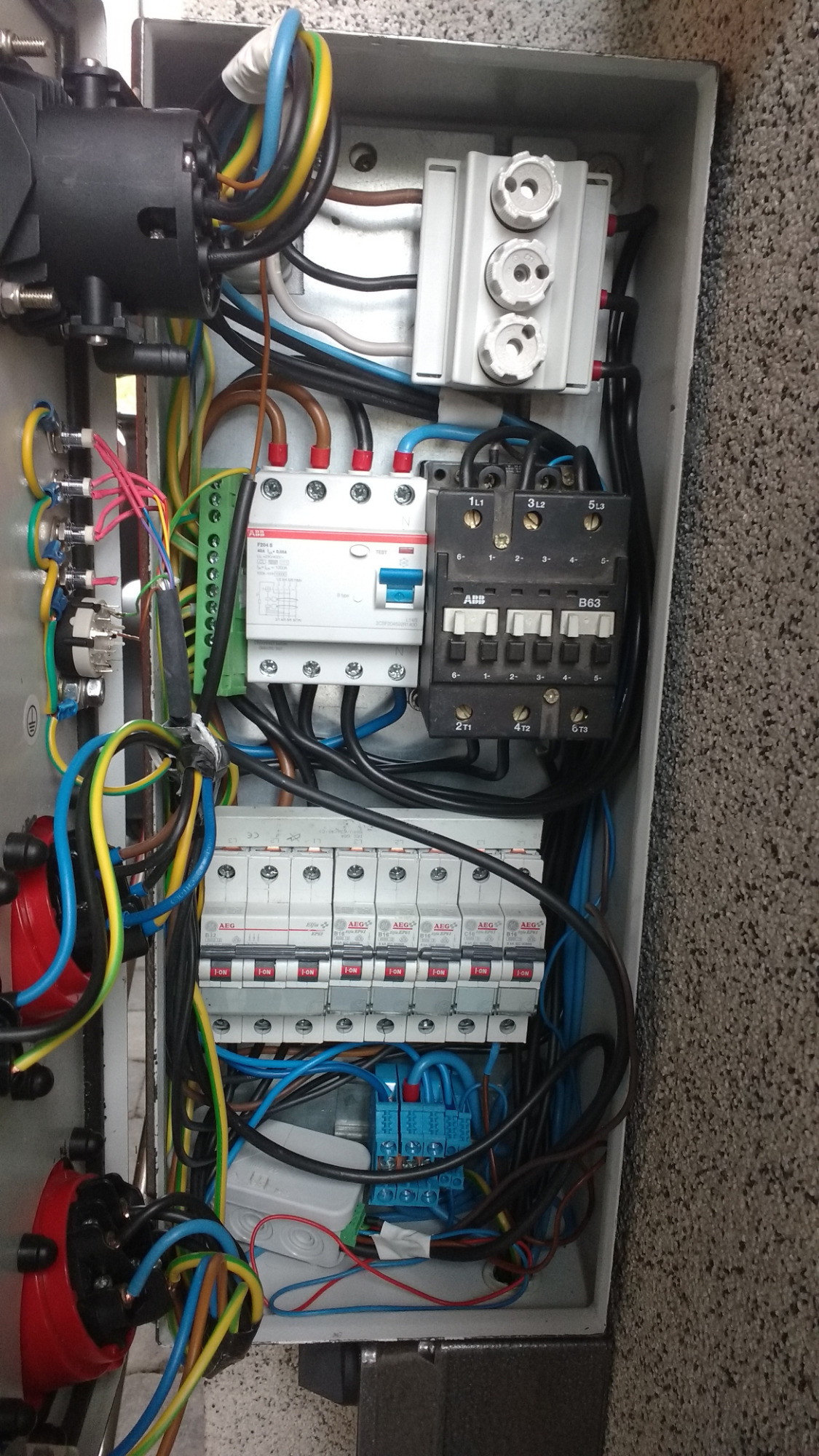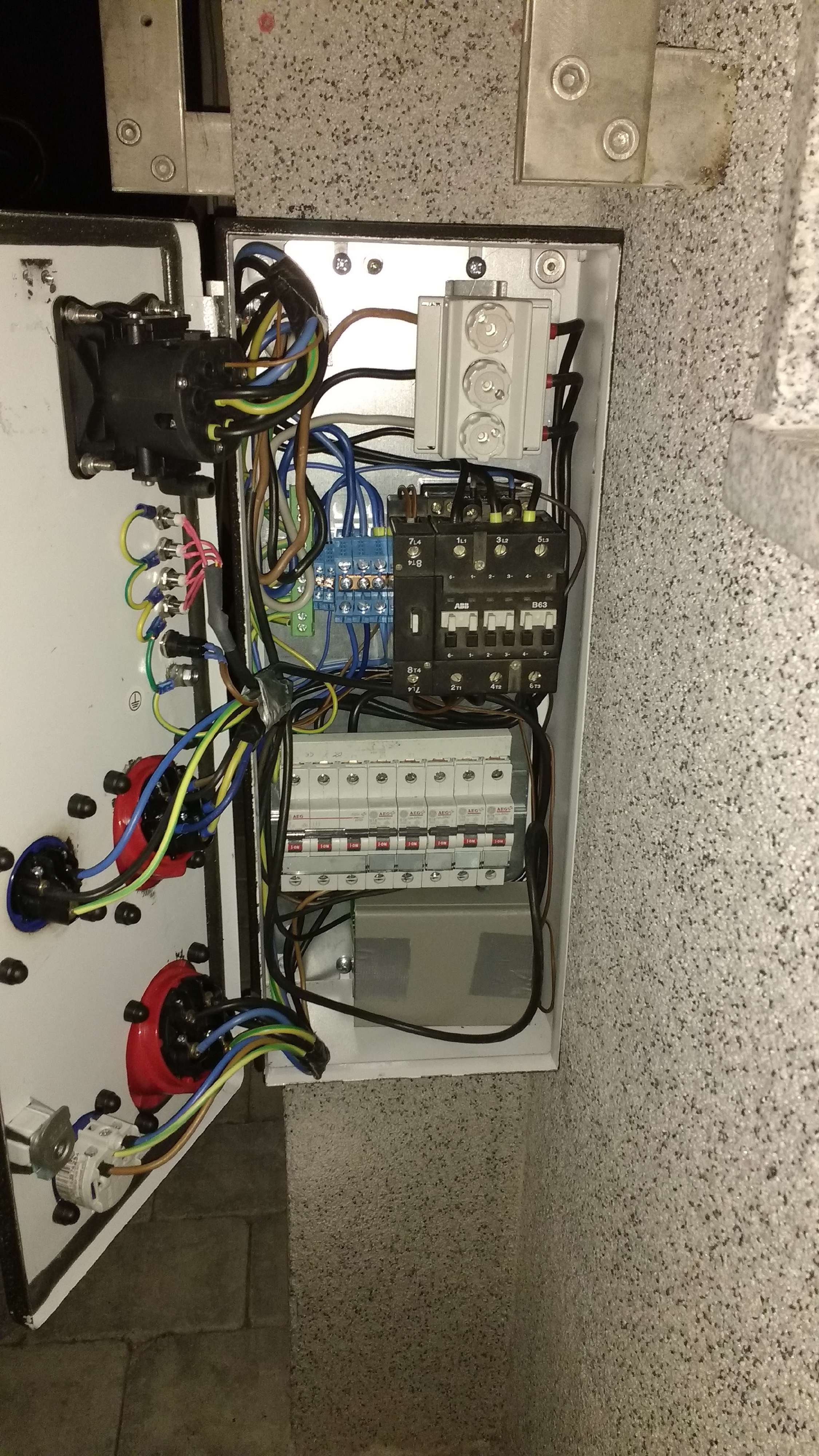 Kostenpunkt waren ca. 250,-, wobei ich das Schütz, die LS und den Kleinkrempel liegen hatte. An die Verteilung ist das ganze mit 5x16qmm angebunden.