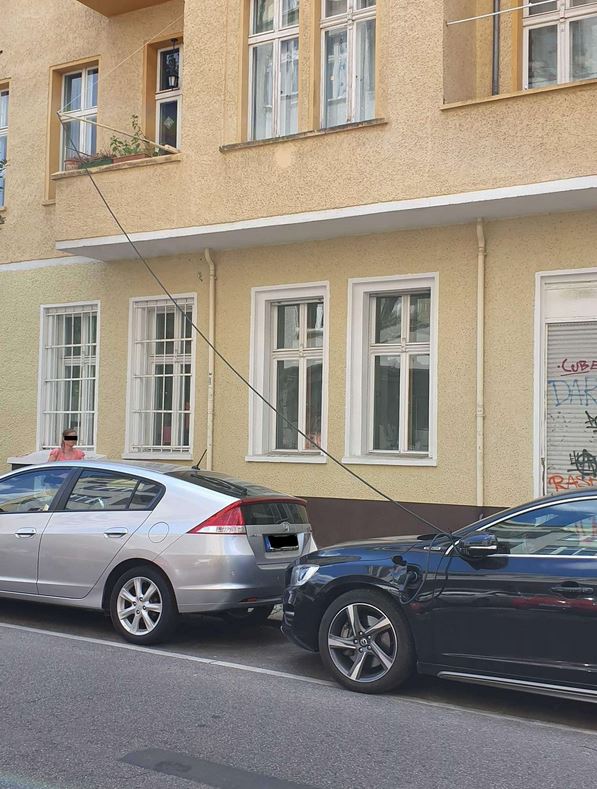 Nur höher, also aus dem 4. Stock, senkrecht runter, am Ende hing ein Twizy.