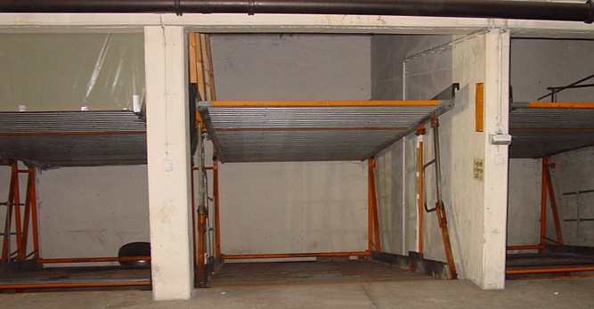 Jeweils eine Gruppe Doppelparker (2 oder 4) haben ein gemeinsames Hydraulikaggregat. Die Stellflächen kann man mit Schlüsselschaltern hoch- und runterfahren.