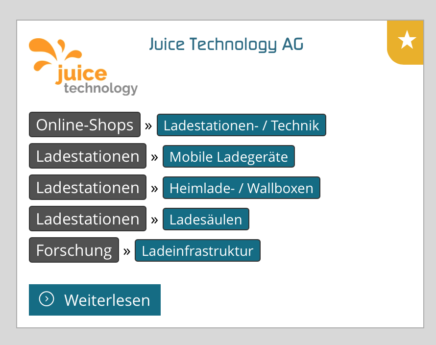 Der Verweis auf den Ladesaulenhersteller im Letzten Link ging auf Juice-Technology.