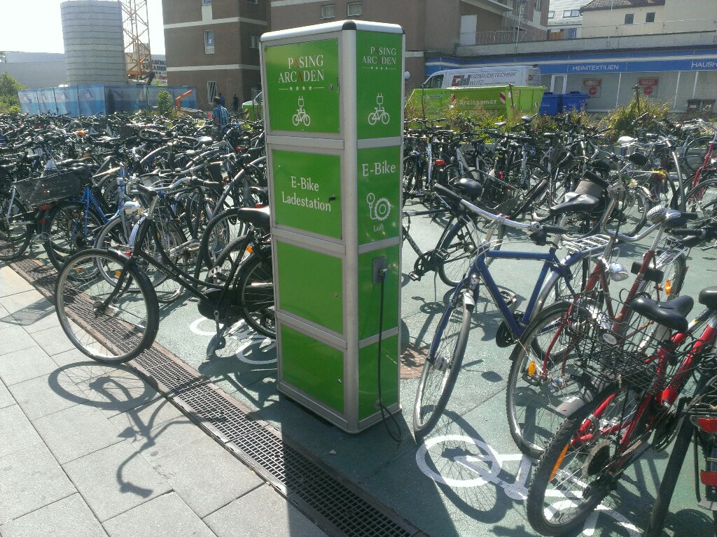 Ich stand auf dem Platz vor dem Bahnhof / Pasing Arcaden an der Ladestelle füt Elektrofahrräder. Eigentlich ein sehr praktischer Ladepunkt, Schuko, fast immer frei und da der Platz hermetisch mit Pollern abgeriegelt ist, nicht für PKW erreichbar. Für's Twizy schon :P