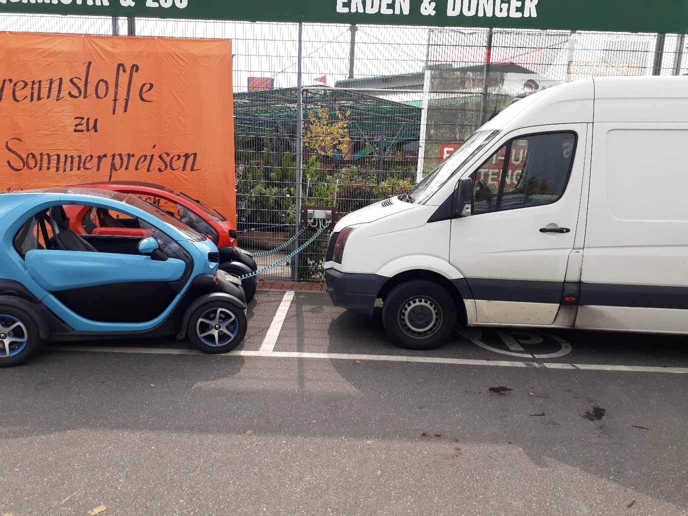 Doppelsteckdose für E.Mobil - kannst nur einen Twizy auf einmal Laden. Schlecht vorstellbar, dass die zwei Leitungen in die Doppel geführt haben (was m.W.n. auch unzulässig wäre)