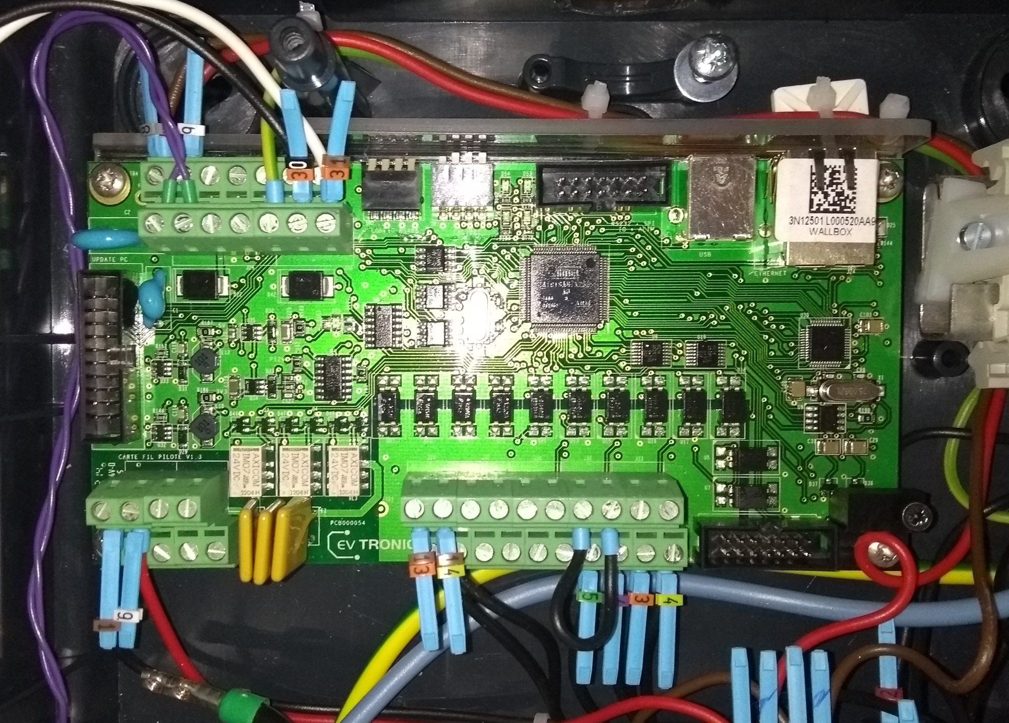 Wenn man sich die Schneider-Platine anschaut und dann die EVSE gegenüber stellt ... Schneider hats schon ziemlich oversized ... lag wohl im Regal, - schon nicht falsch, denn warum auch für jeden Zweck unzählige Platinen entwickeln, wenn man es mit kleinen Änderungen dem Zweck anpassen kann. Vermutlich fehlt in der Firmware auch der Teil, oder ist gesperrt, der bspw. die Web Oberfläche bereitstellt. Ich habe einiges ausprobiert, da ist keine Aktivität am LAN zu entlocken.