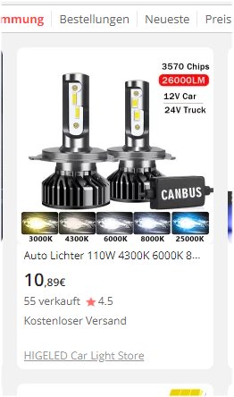 Berthold schrieb: Eine einzelne LED lampe H4 kann man auch von Etablierten Herstellern kaufen. Z.B Osram.