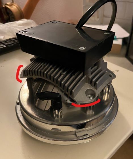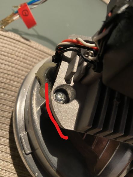 Die alten Befestigungs / Einstellschrauben halten auch den neuen LED Einsatz.